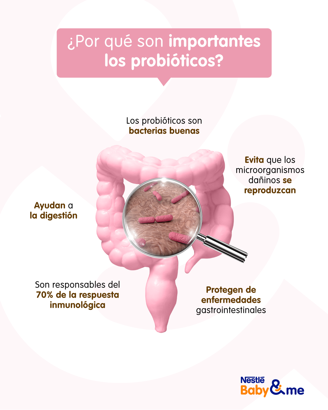 Te preguntarás cómo es que los probióticos pueden llegar a tu bebé en sus primeros meses de vida… La respuesta es simple: por medio de la lactancia. Cuando amamantas, muchas propiedades llegan a él a través de la leche materna, como: agua, proteína, vitaminas, minerales, ¡y también probióticos!